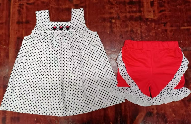 Preorder moq 5 Baby Girls Sleeveless Polka Dots Cartoon Mouse Tunic Ruffle Short Set