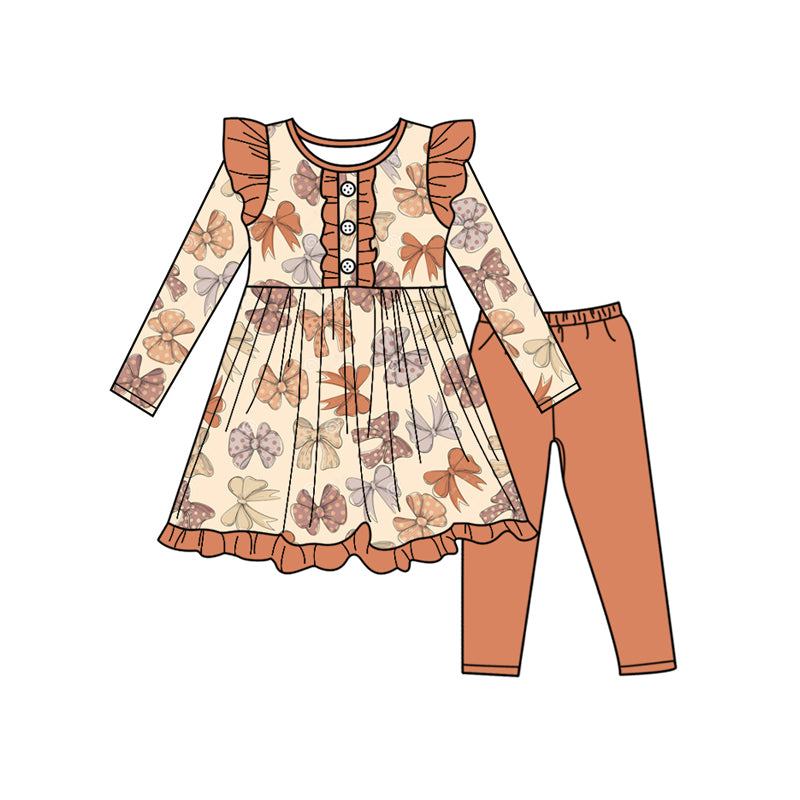 Preorder (moq 5)Baby Girls Long Sleeves Colorful Bows Plaid Button Tunic Legging Pants Set