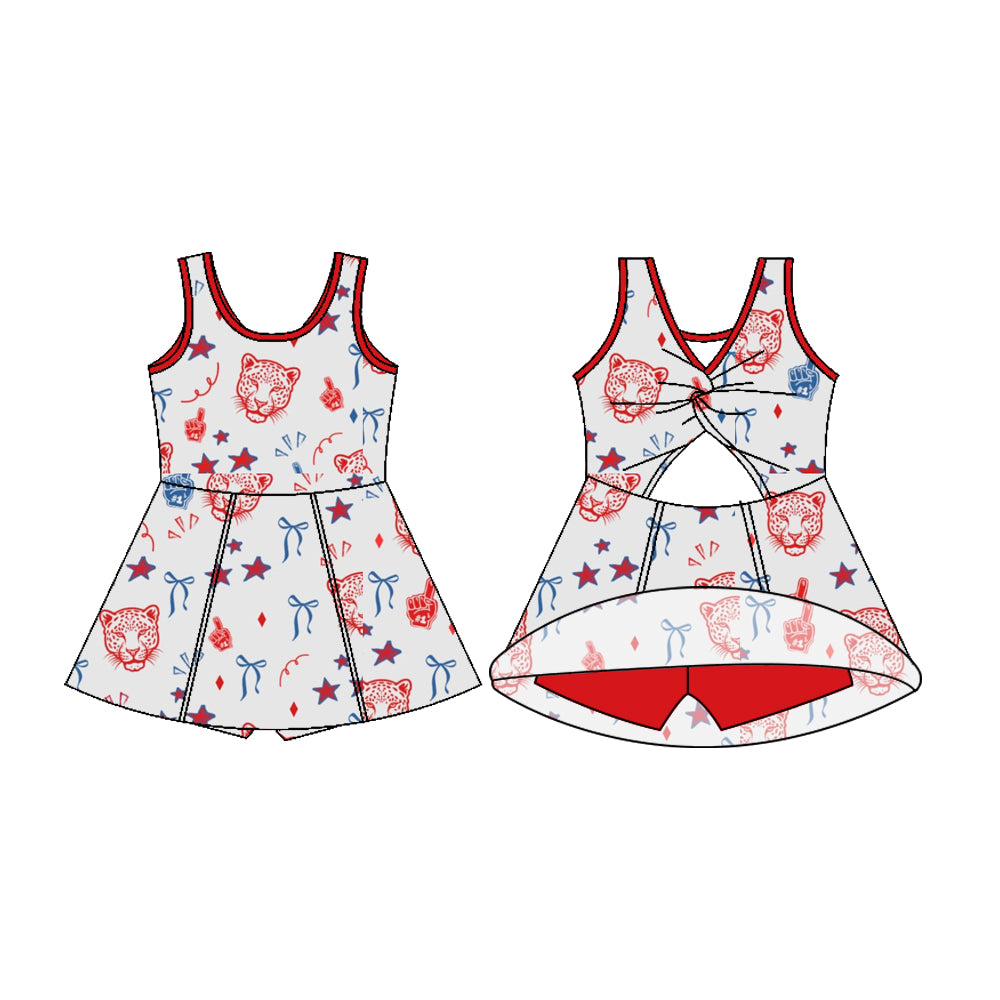 Preorder (moq 5)Baby Girls Sleeveless Grey Leopard Football Team Shorts Team Dresses