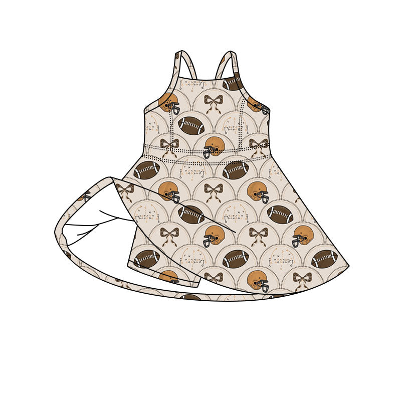 Preorder (moq 5)Baby Girls Strap Footballs Bows Checked Team Shorts Knee Length Dress