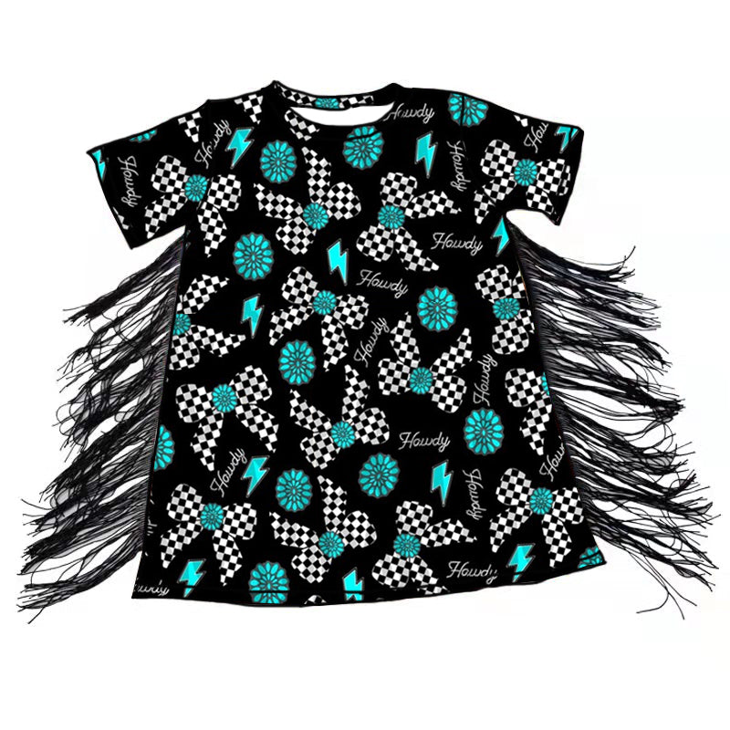 Preorder (moq 5)Baby Girls Western Howdy Bows Tassel Knee Length Dresses