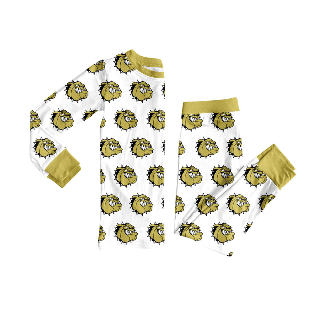 Preorder (moq 5)Baby Girls White Gold Dog Team Leopard Plaid Top Pants Pajamas Set