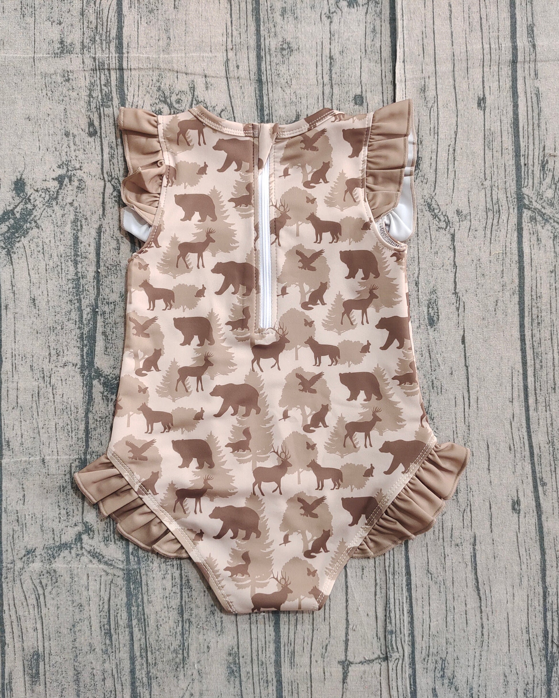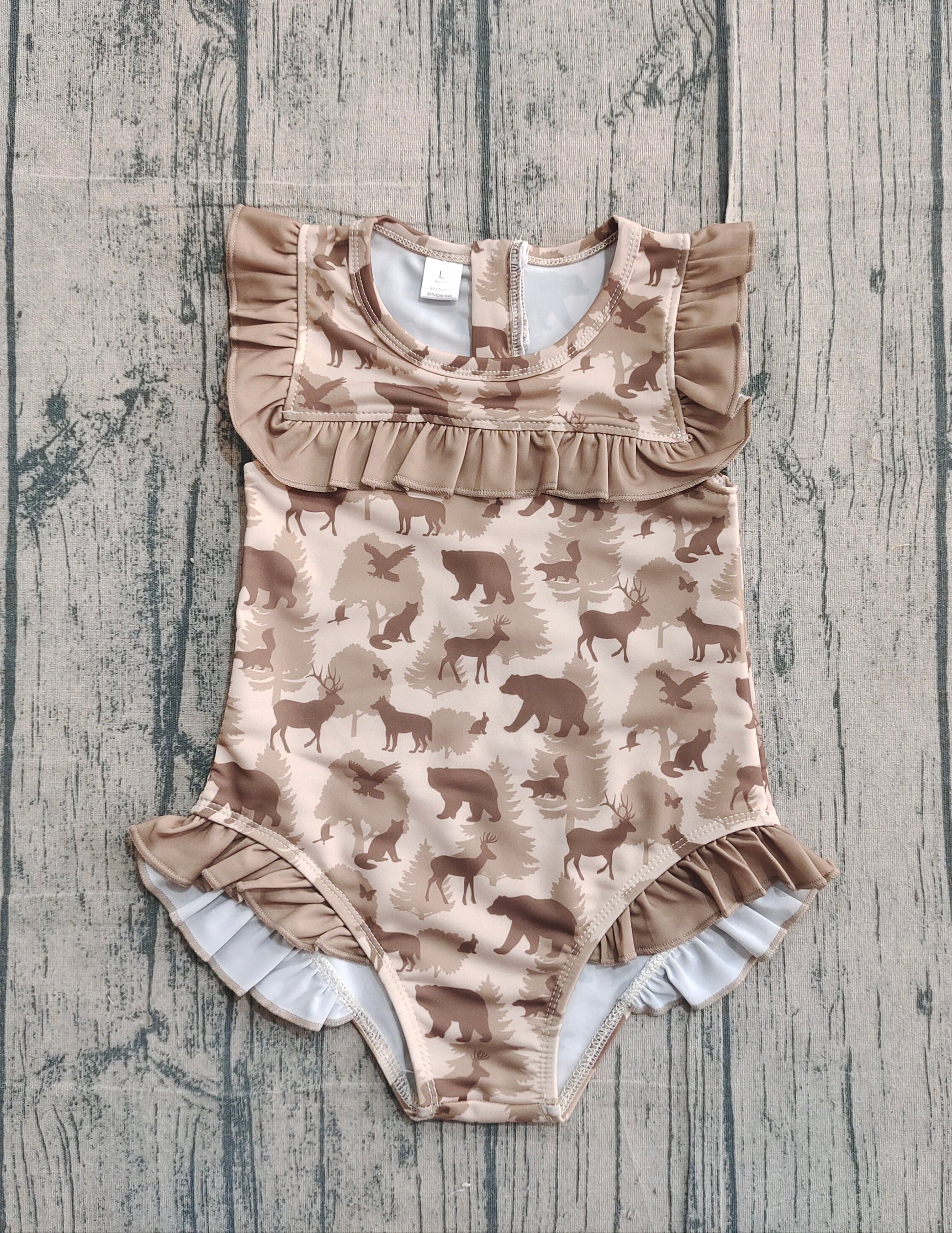 Baby Girls Khaki Deer Bears Camo Ruffle Swimsuits Preorder