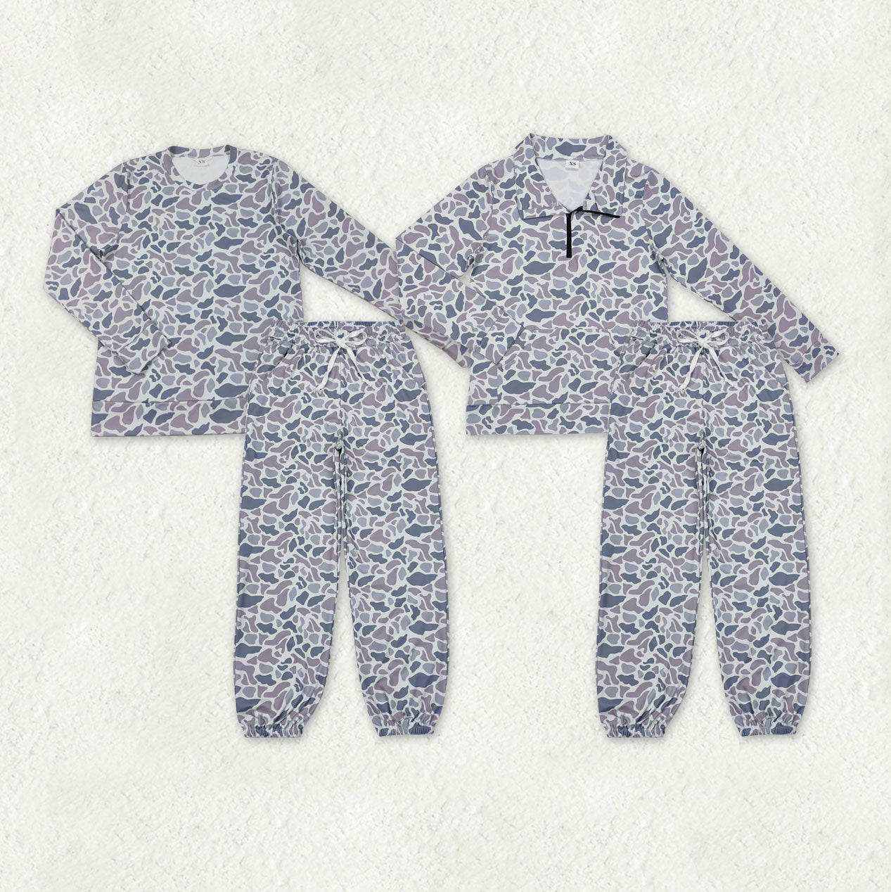 Sibling Adult Women Grey Camo Top Pockets Jogger Yoga Active Clothes Sets