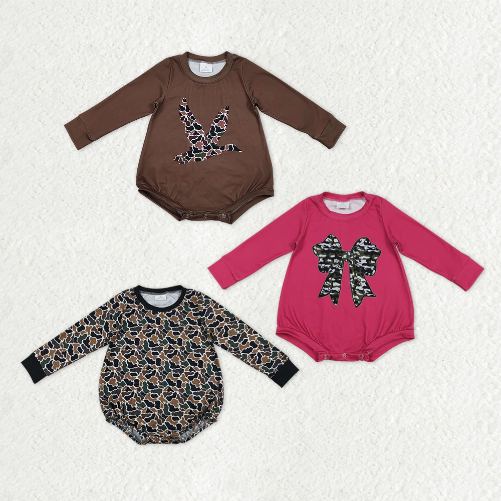 Sibling Baby Boys Girls Camo Bows Ducks Southern Hunting Rompers