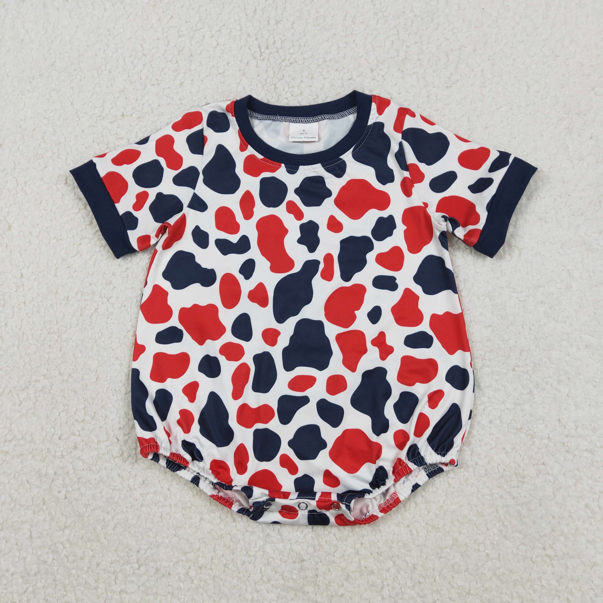 Sibling Baby Boys Red Blue Cow Print Button Tops Shorts 4th of July Clothes Set Rompers