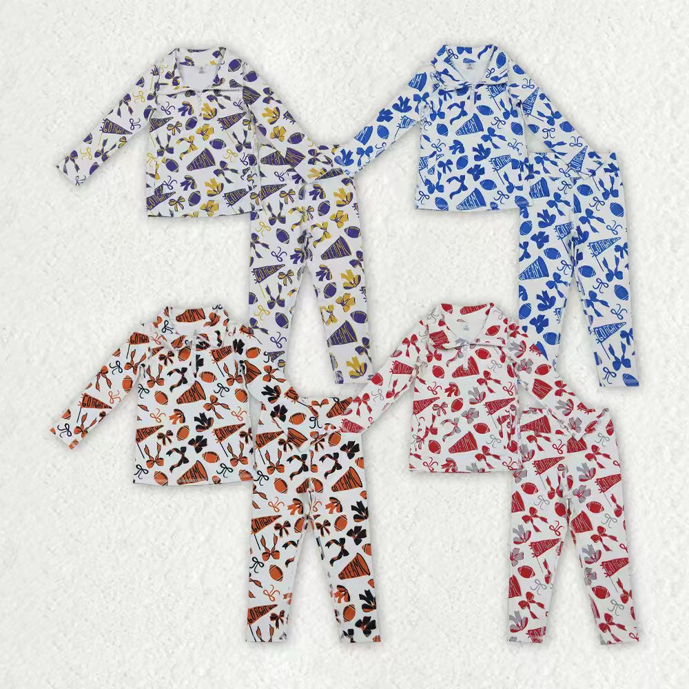 Sibling Baby Girls Bows Footballs Go Team Zipper Pullover Leggings Yoga Active Clothes Sets
