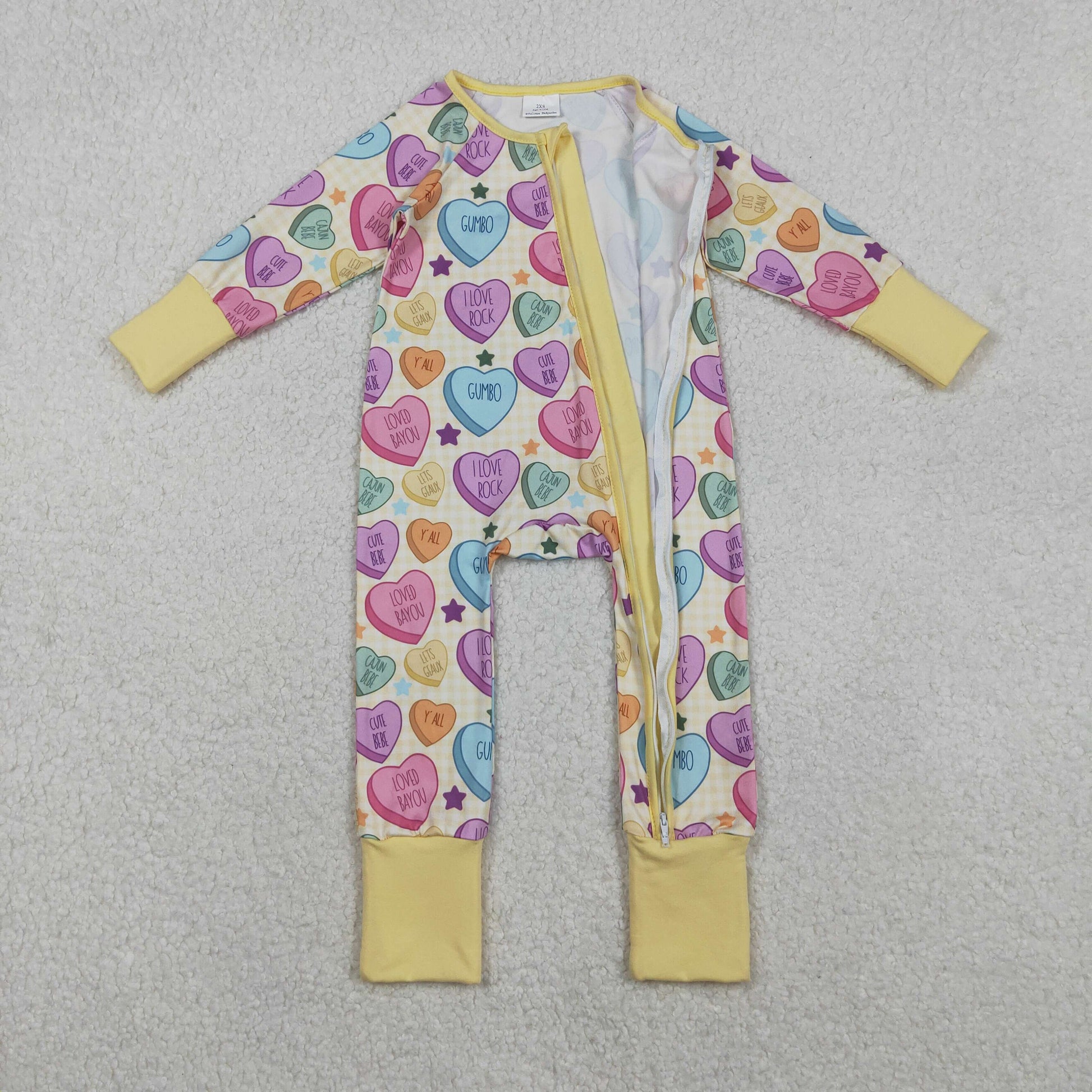 Sibling Baby Girls Colorful Hearts Stars Pants Valentines Pajamas Sets Two Way Zip Convertible Rompers