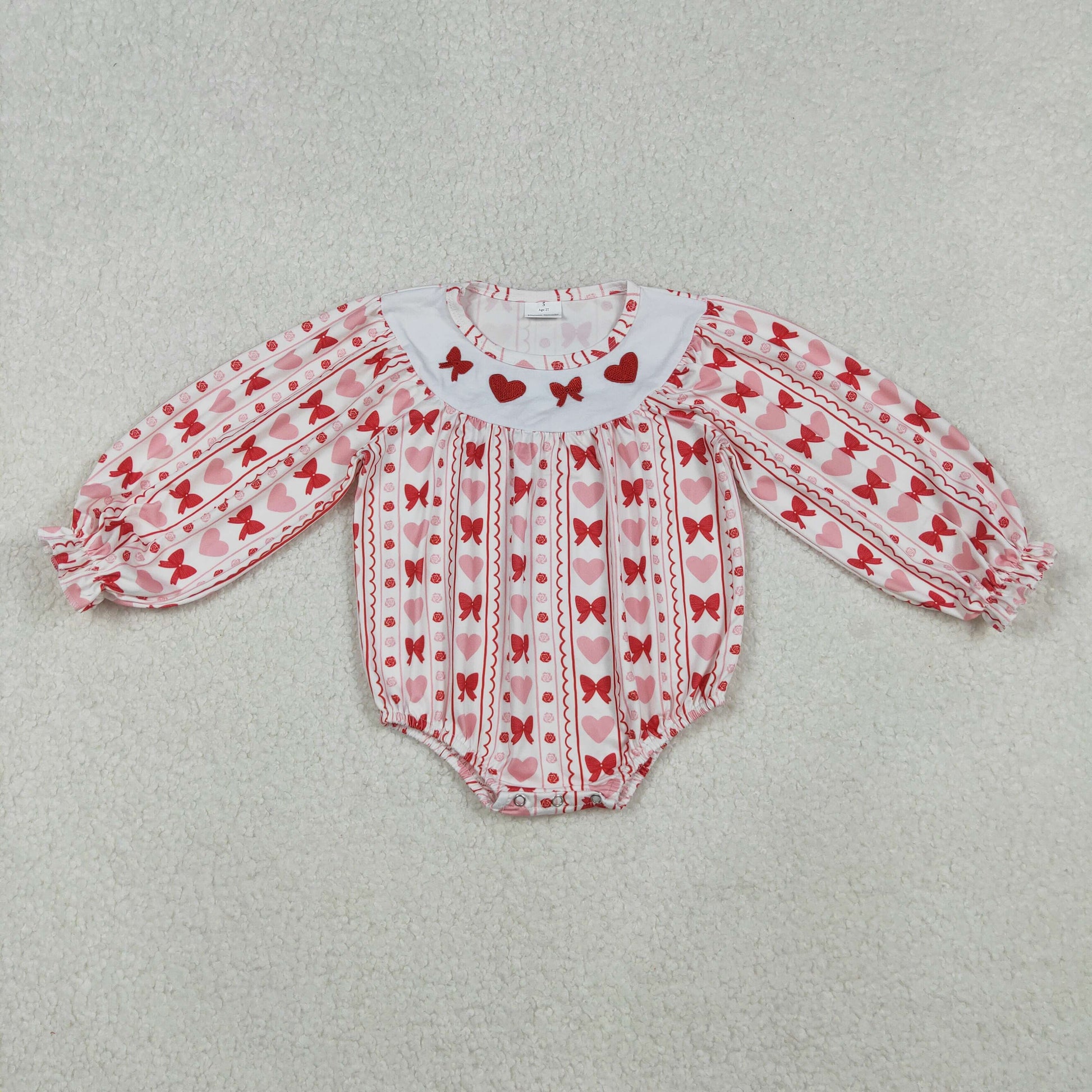 Sibling Baby Girls Embroidery Hearts Bows Tunic Ruffle Pants Knee Length Dress Ruffle Rompers