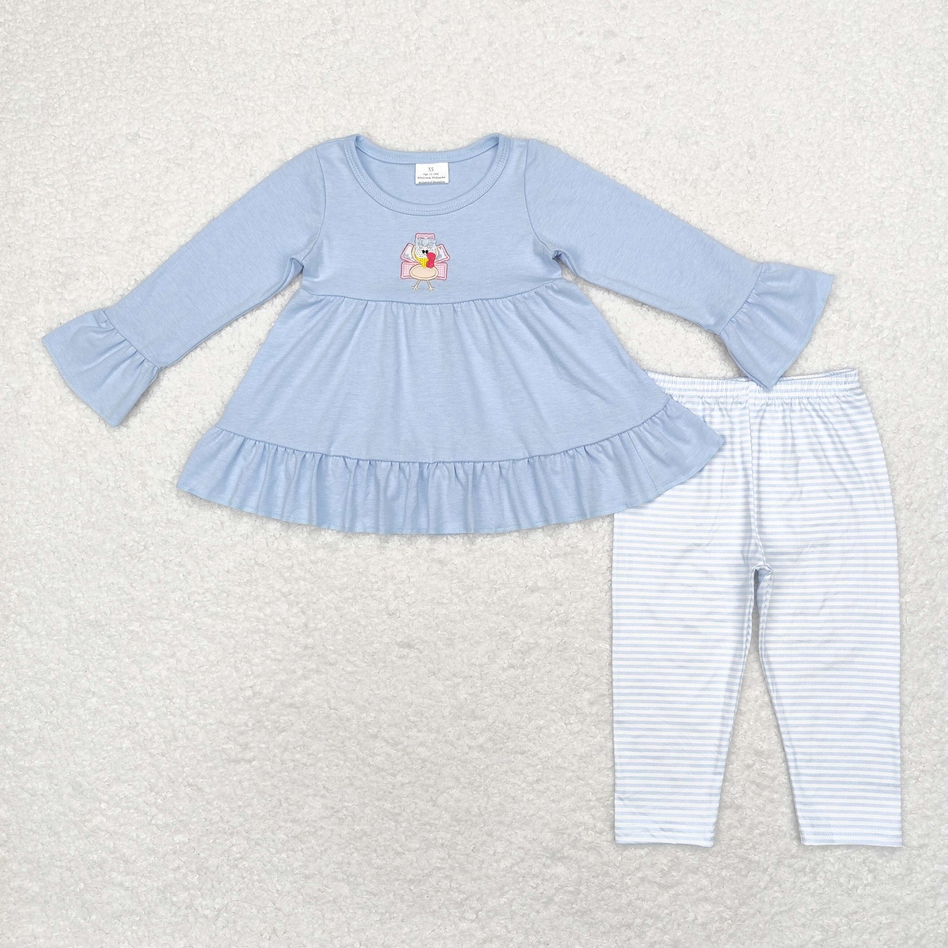 Sibling Baby Girls Embroidery Turkey Long Ruffle Sleeves Pants Thanksgiving Clothes Sets