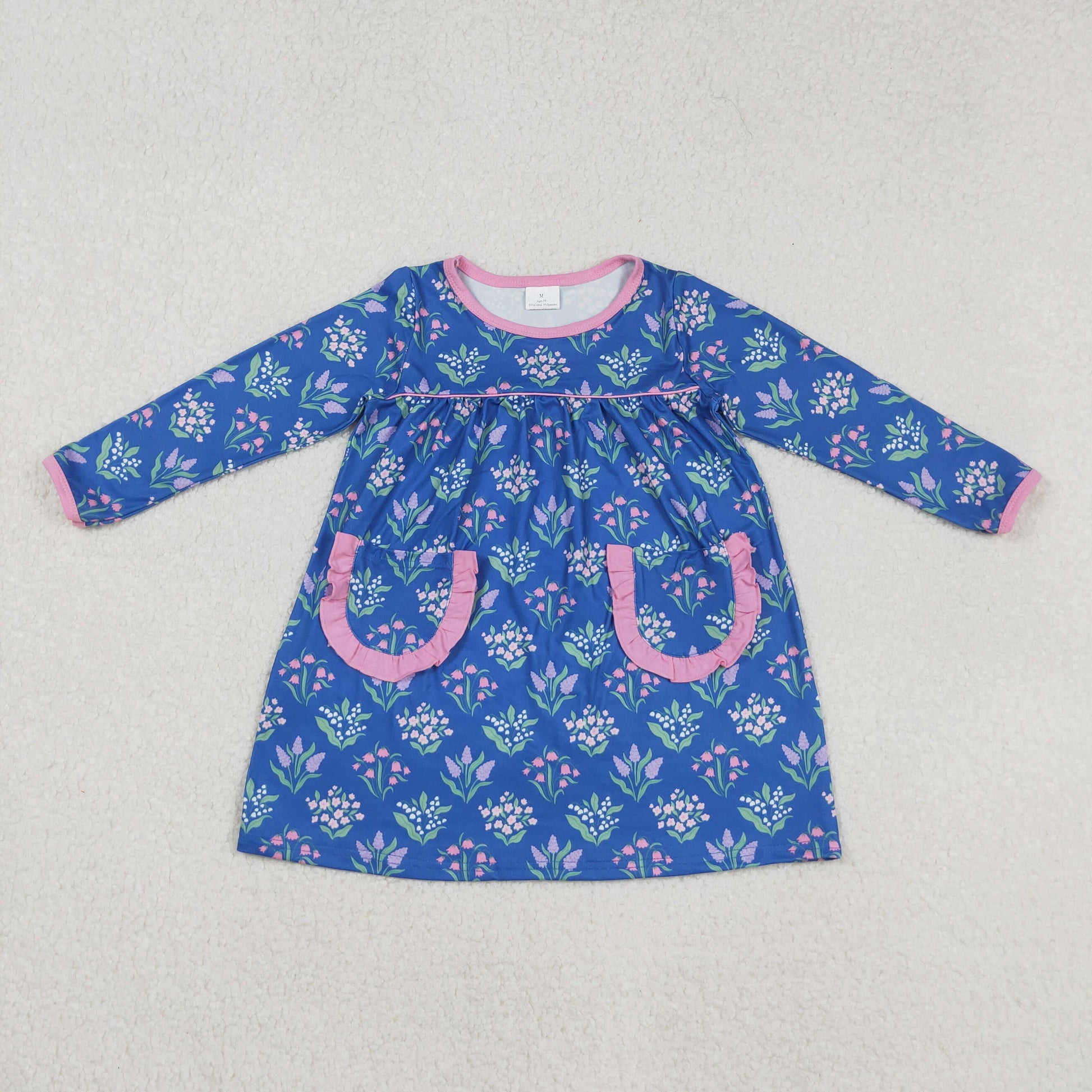 Sibling Baby Girls Flowers Plaid Button Pockets Ruffle Knee Length Dresses