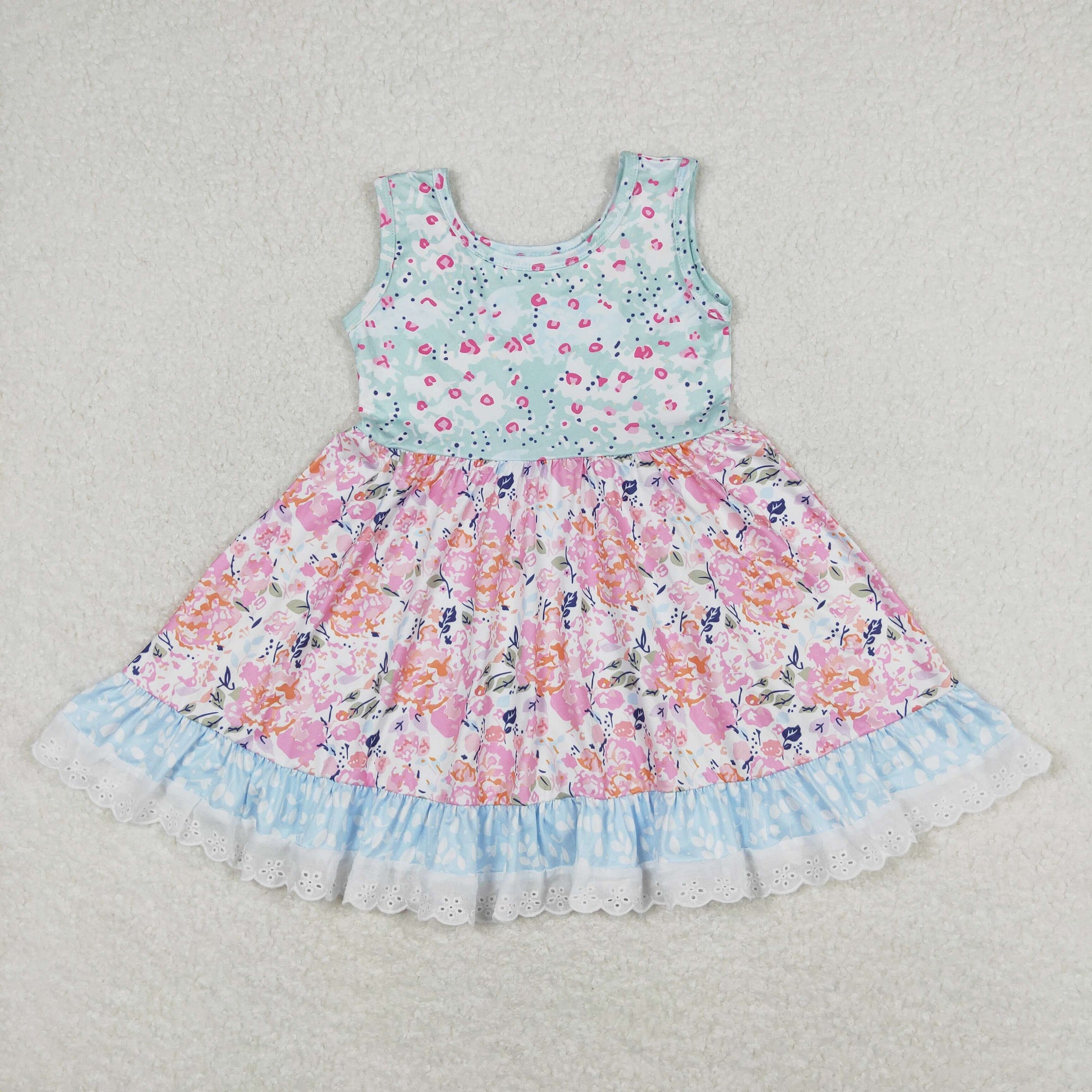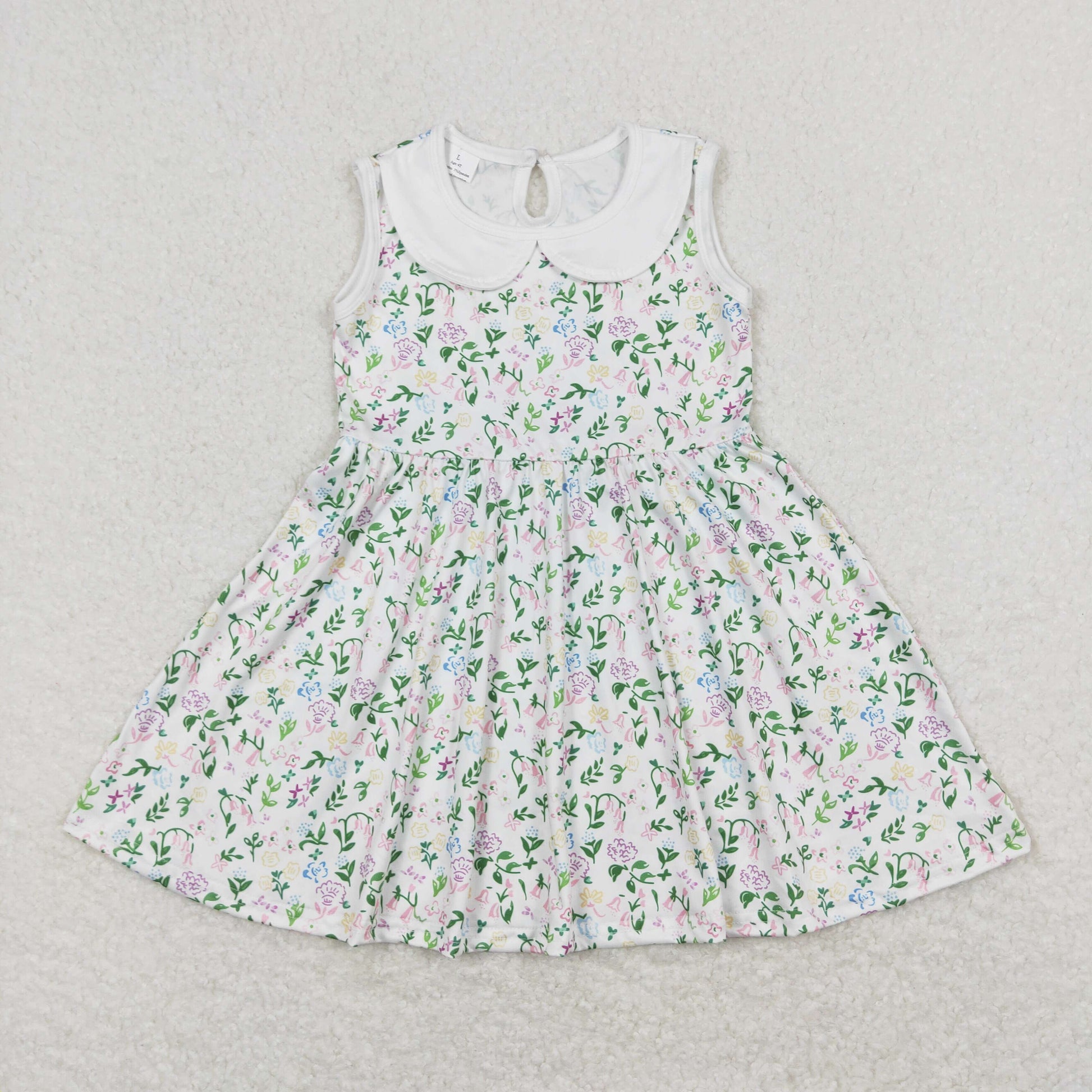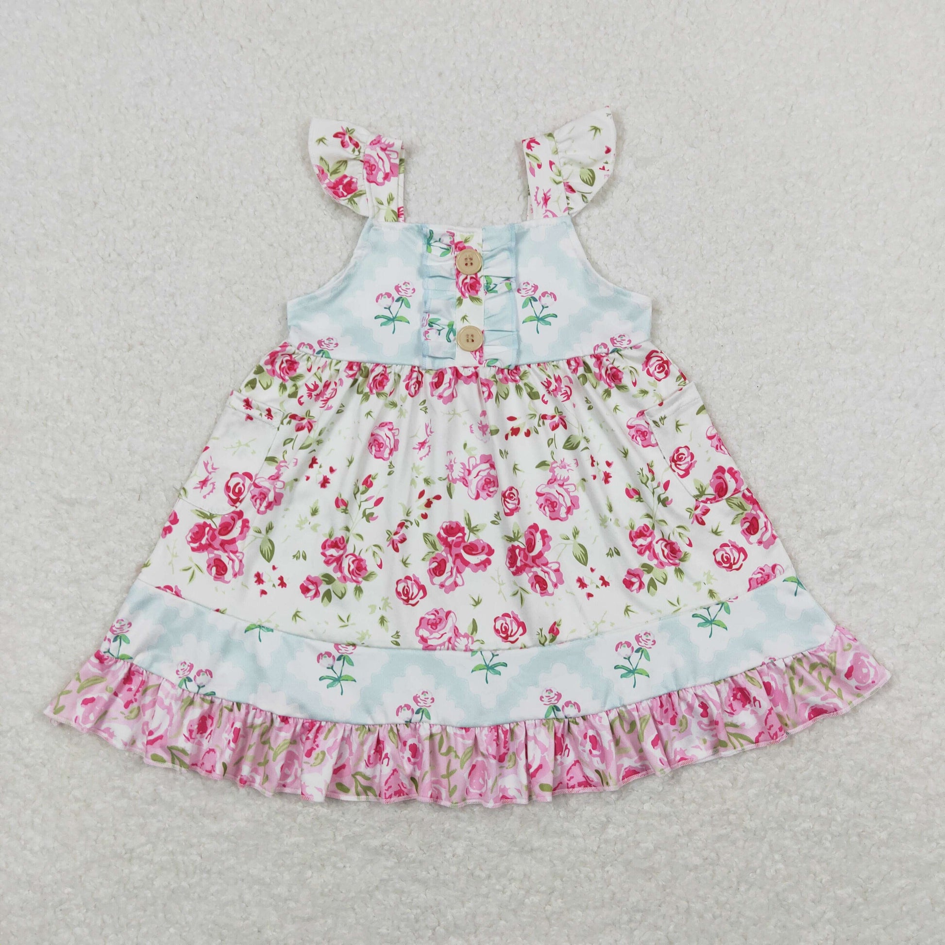 Sibling Baby Girls Flowers Plaid Button Pockets Ruffle Knee Length Dresses