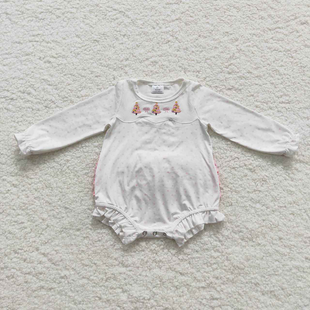 Sibling Baby Girls Pink Christmas Trees Tunic Ruffle Pant Bummies Outfits Clothes Sets Rompers