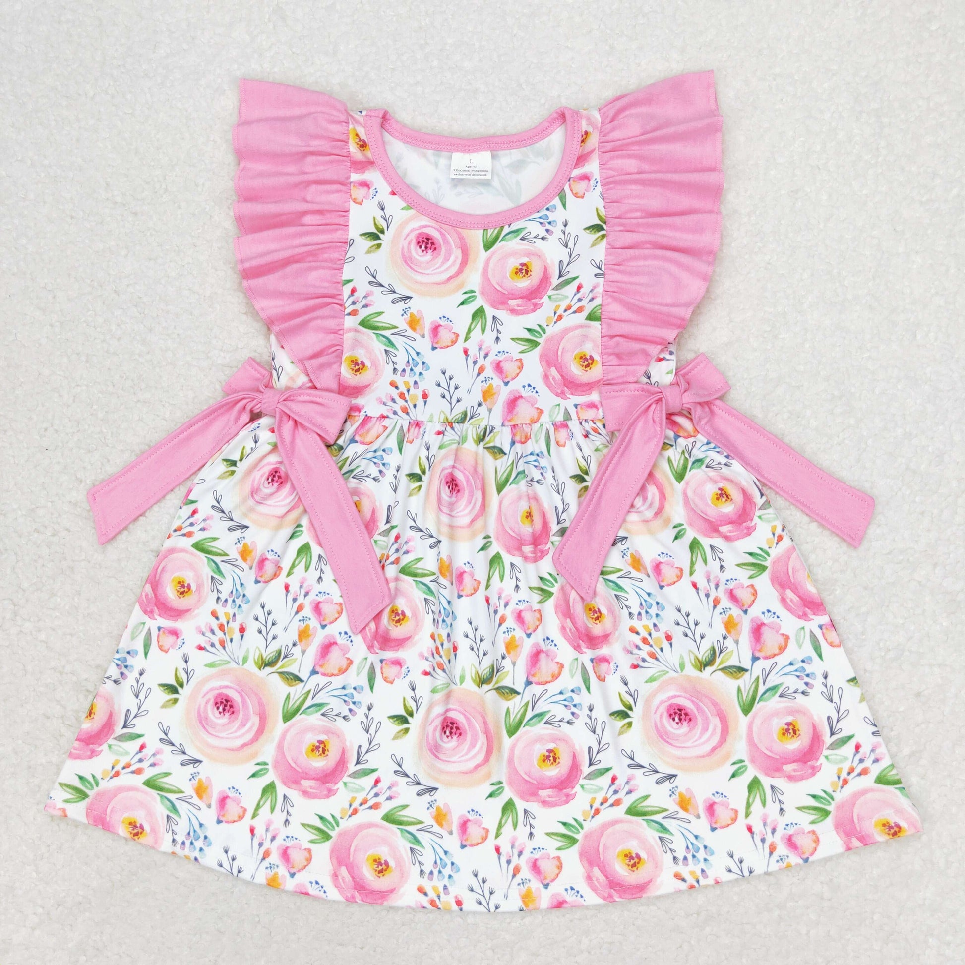 Sibling Baby Girls Sleeveless Flutter Sleeve Bows Flowers Plaid Knee Length Dresses