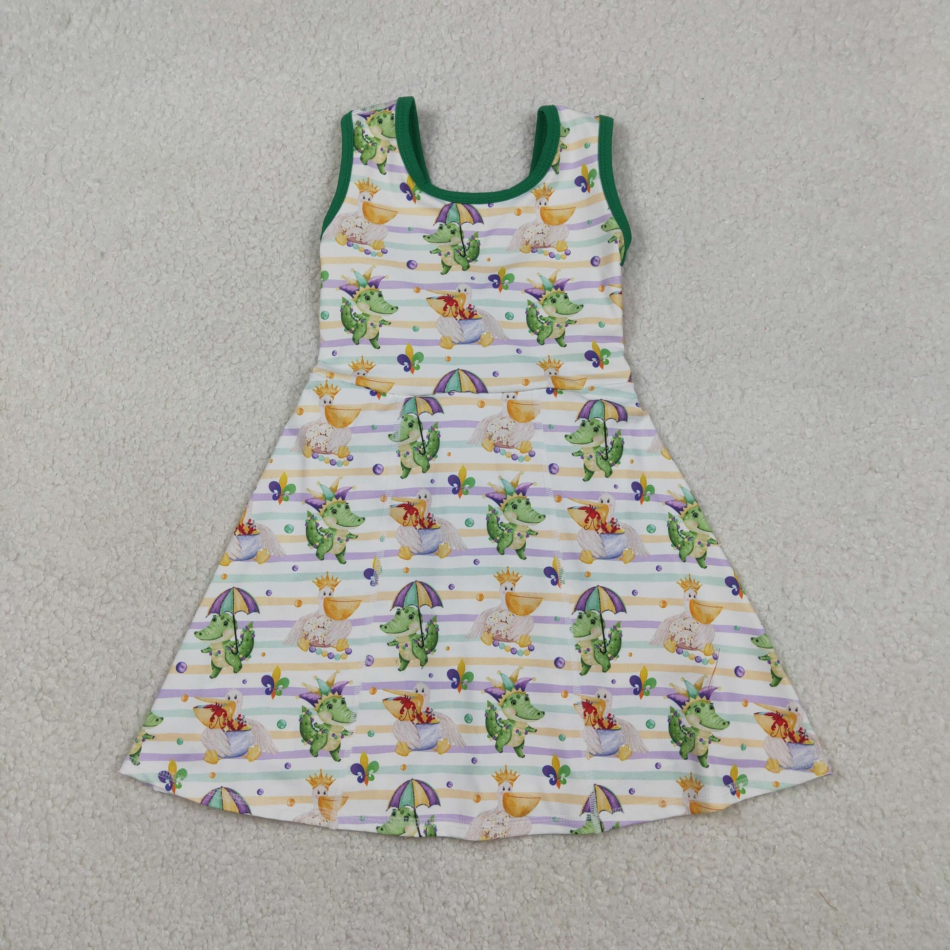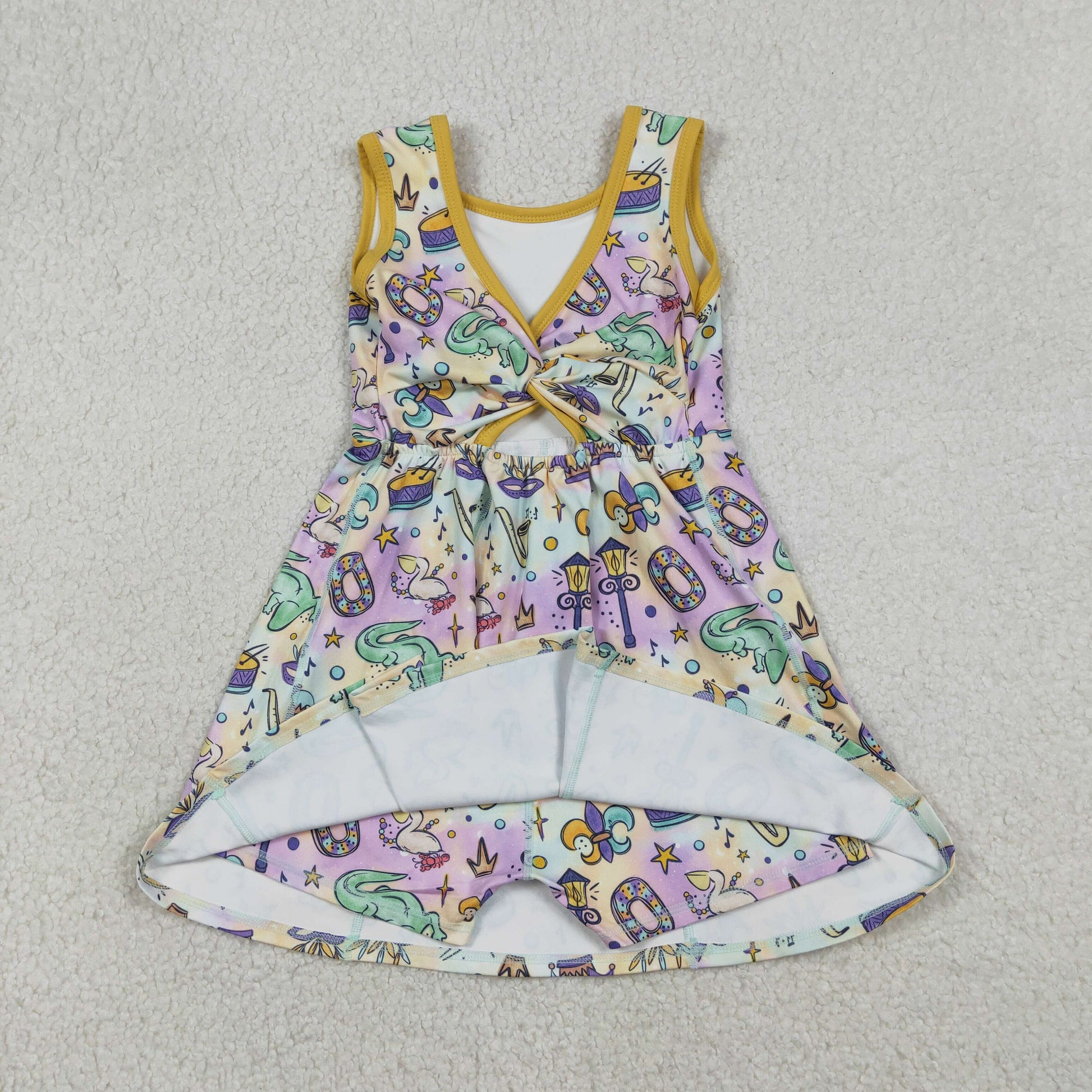 Sibling Baby Girls Sleeveless Mardigras Yoga Active Shorts Knee Length Dresses