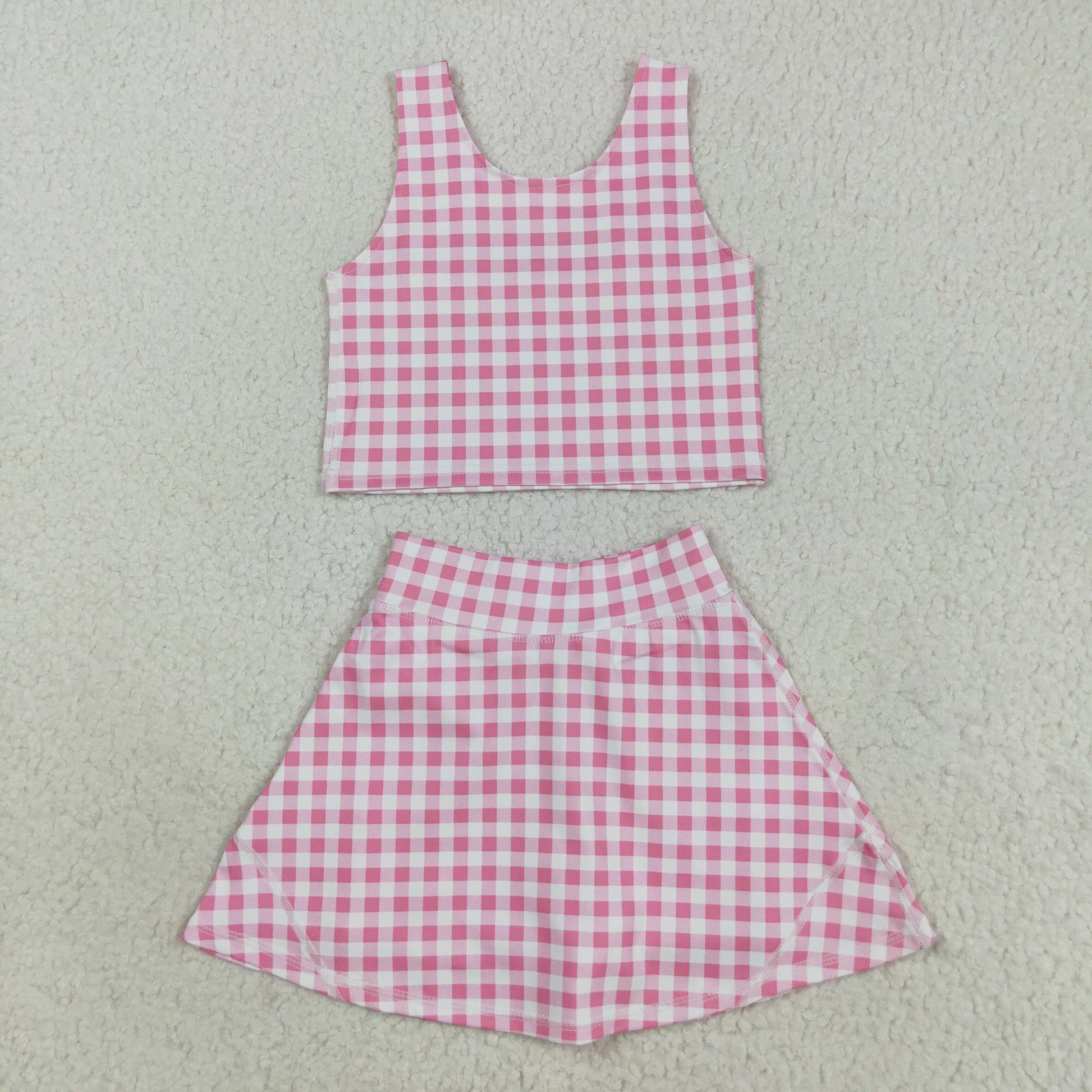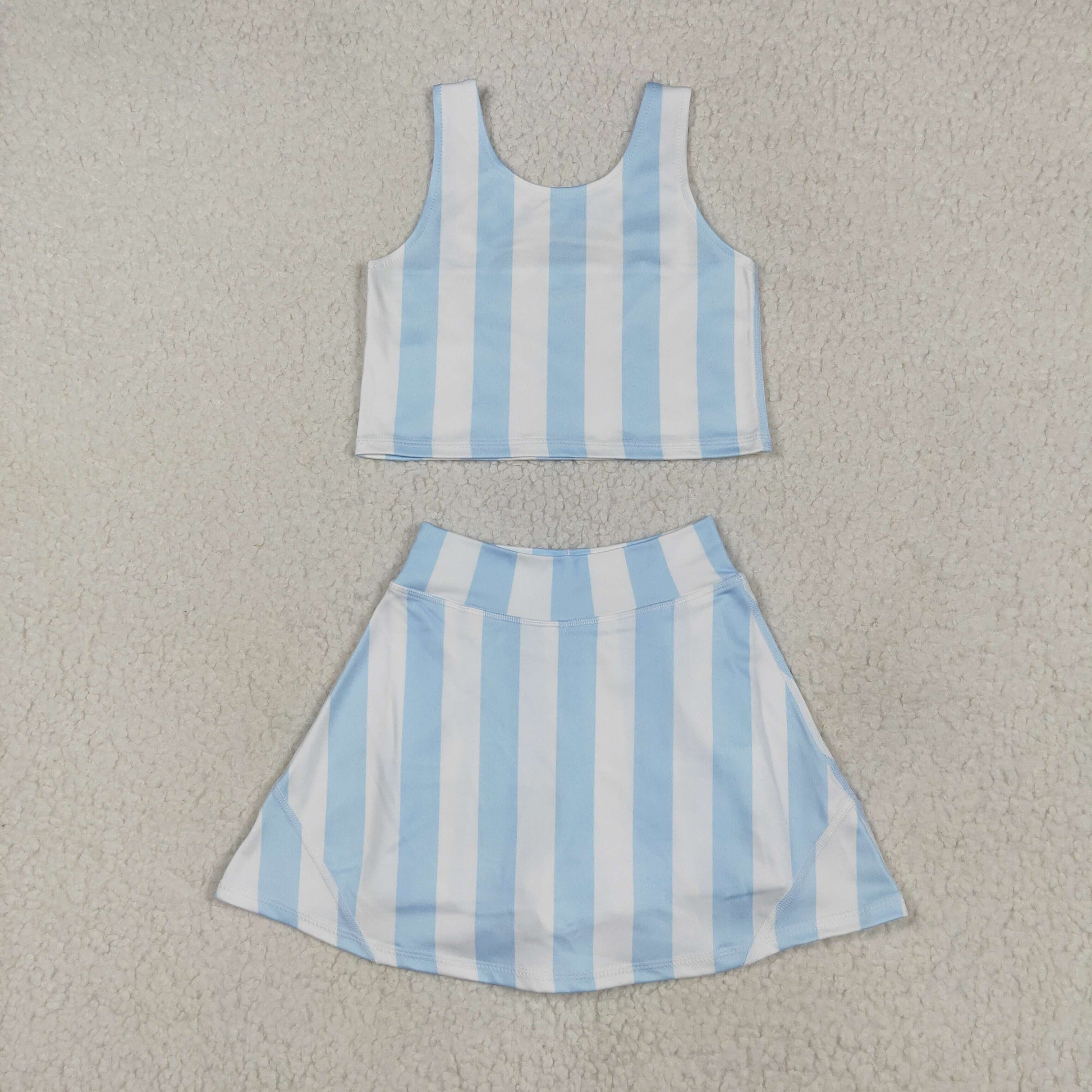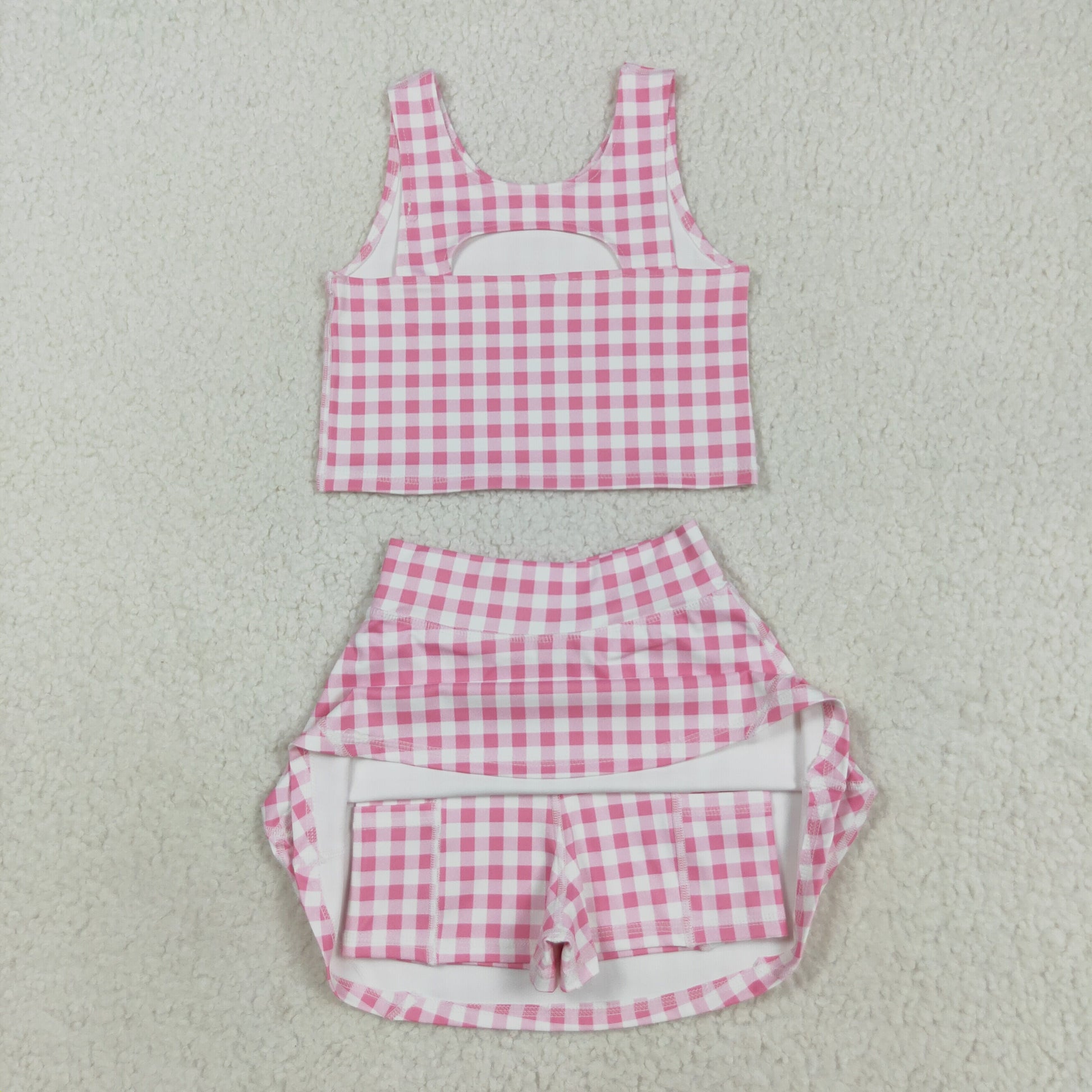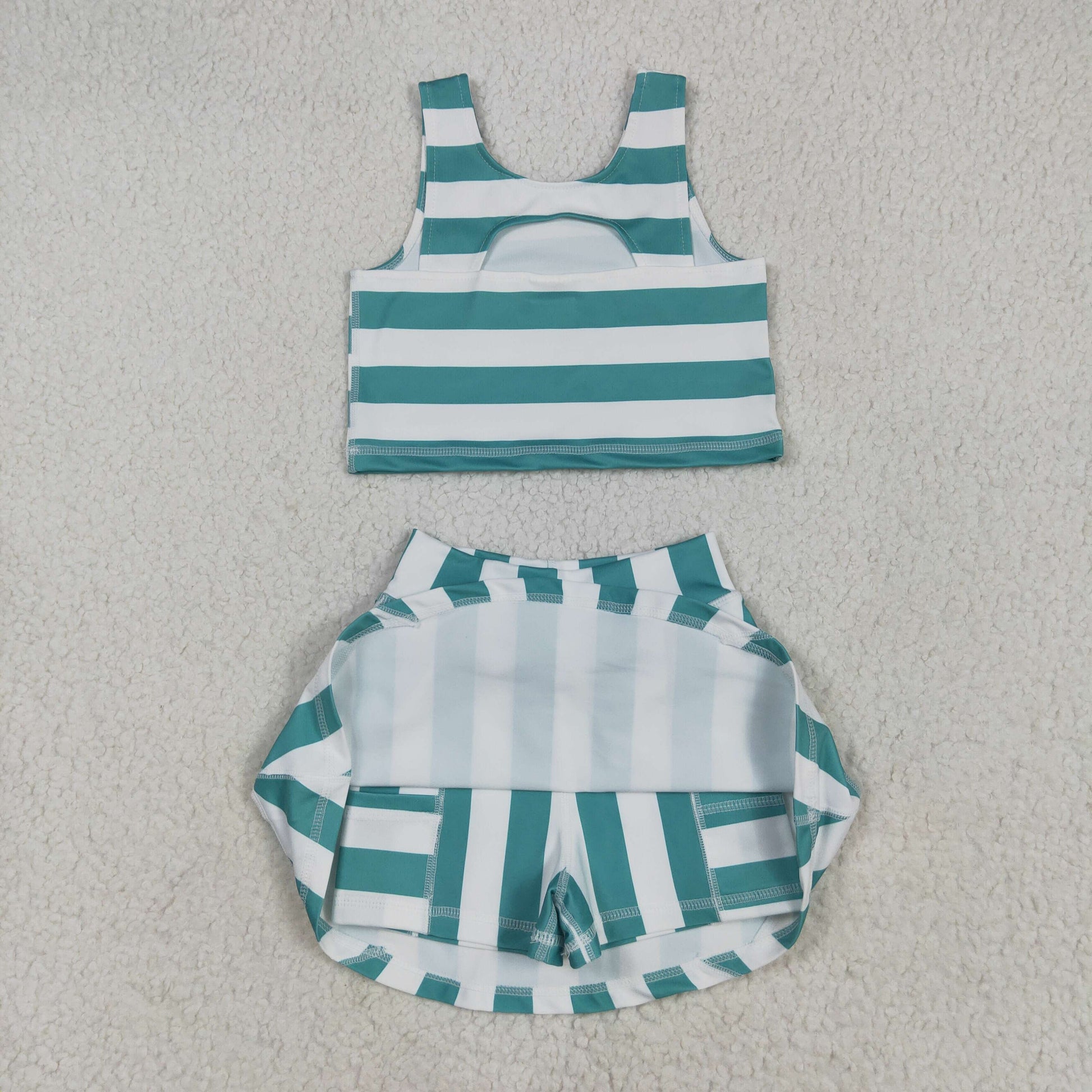 Sibling Baby Girls Sleeveless Stripe Checked Leopard Vest Top Yoga Athletic Skorts Sets