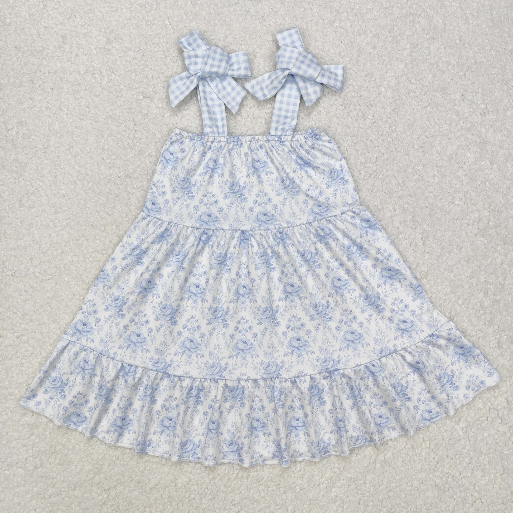 Sibling Baby Girls Straps Leopard Flowers Plaid Ruffle Knee Length Dresses