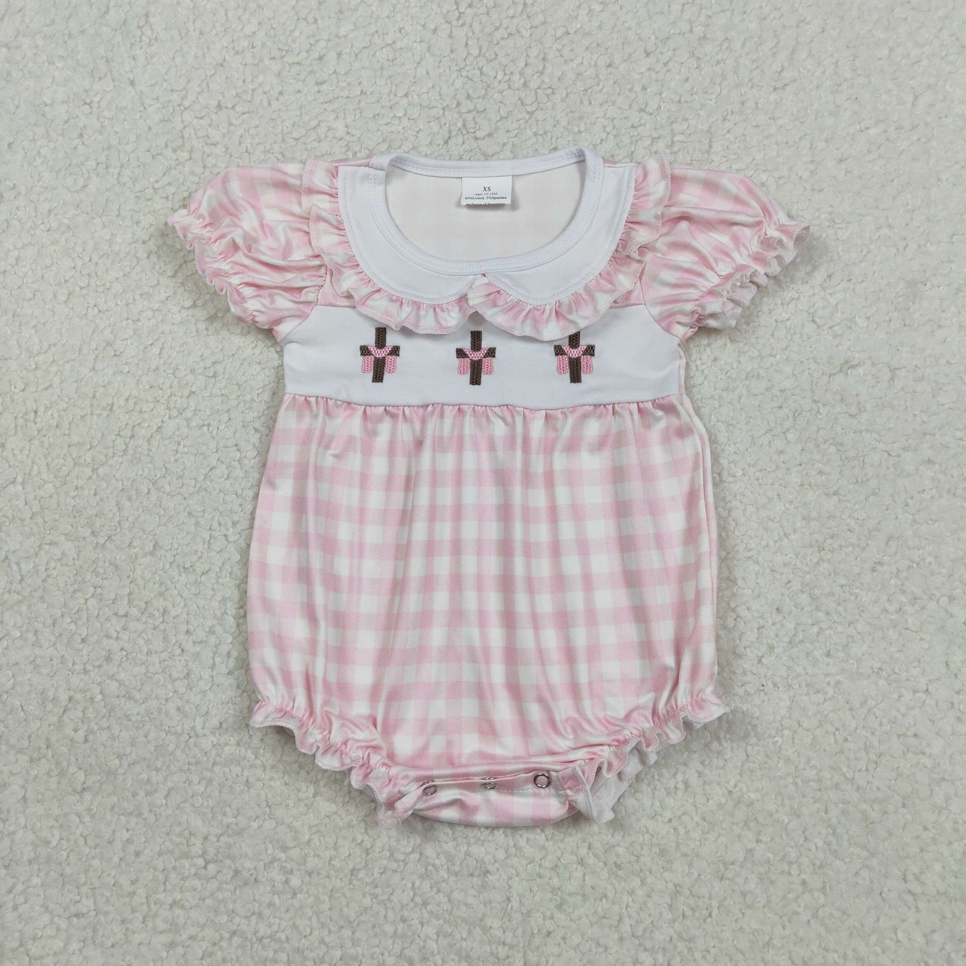 Sibling Baby Kids Embroidery Crosses Easter Checked Collar Knee Length Dress Rompers