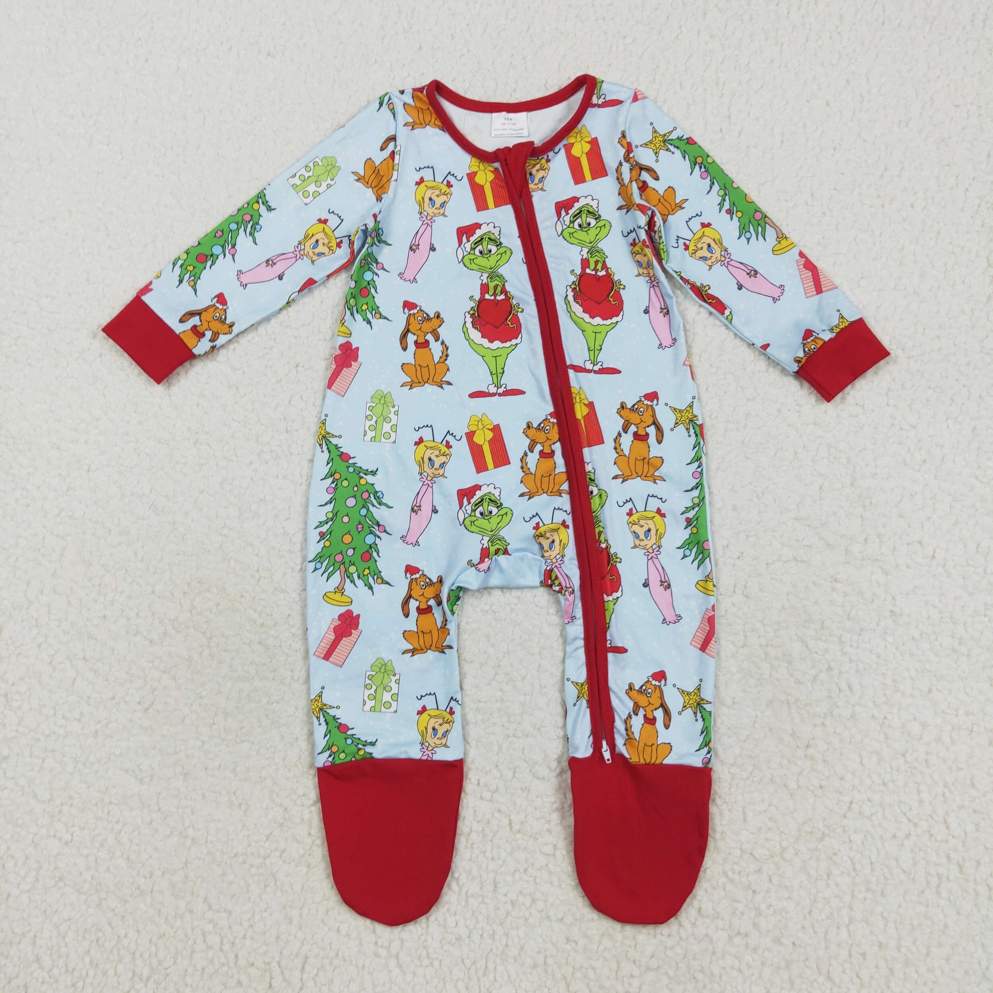 Sibling Baby Kids Long Sleeves Green Face Miss Christmas Pajamas Sets Zipper Footed Rompers