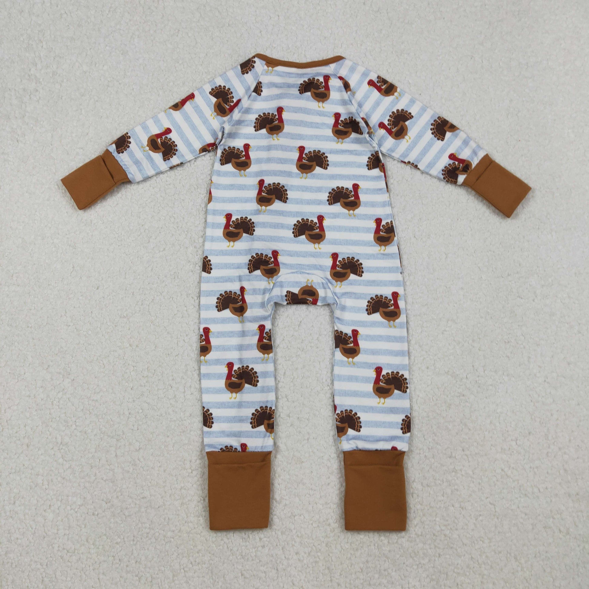 Sibling Baby Kids Turkey Pie Pumpkins Thanksgiving Two Way Zip Convertible Rompers