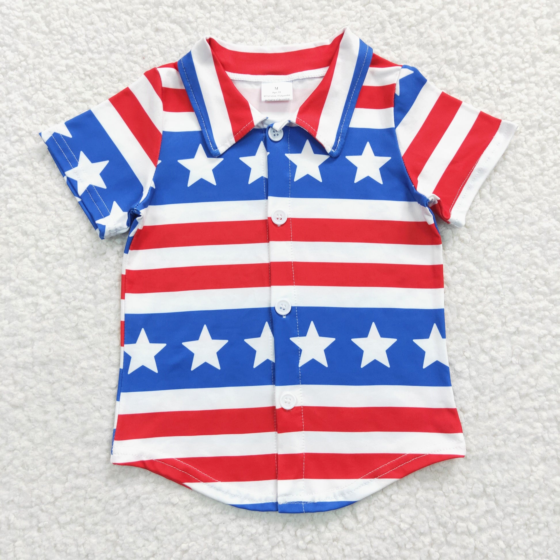 Sibling Brother Baby Boys 4th of July Star Stripe Button Up Shirts