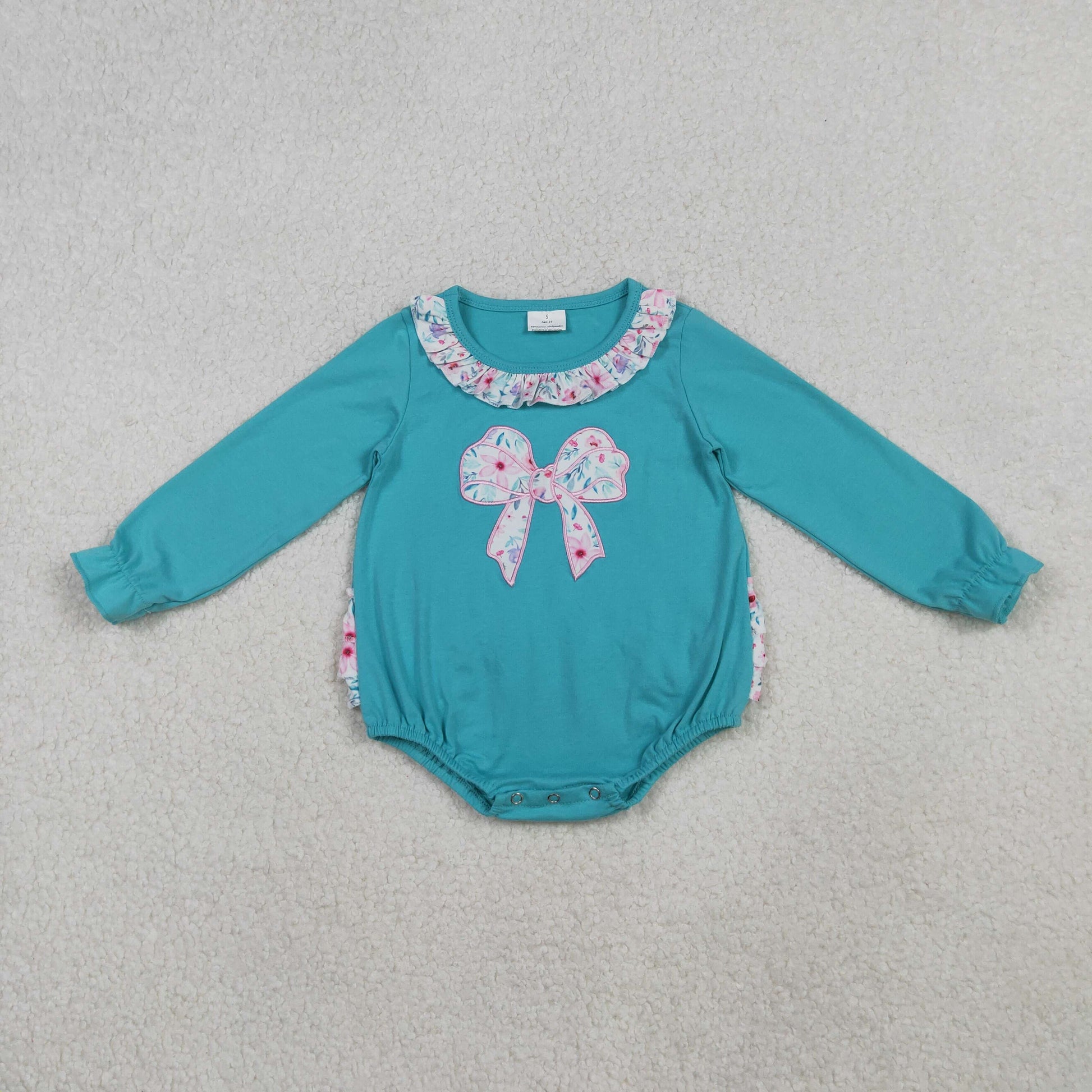 Sibling Embroidery Floral Bows Baby Girls Knee Length Dresses Ruffle Collar Rompers