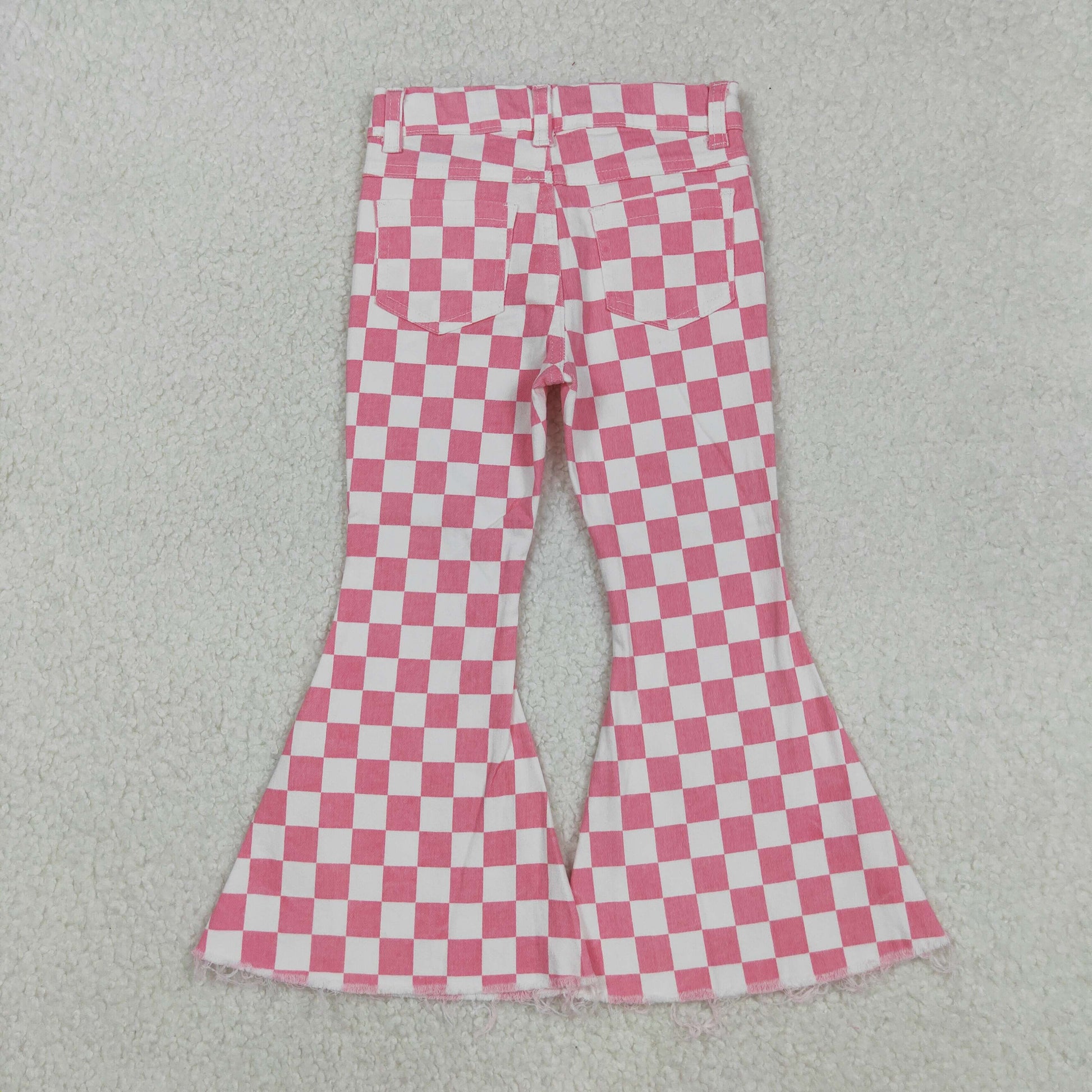 Sibling Girls Boys Checkered Denim Adjustble Waistband Jeans Pants