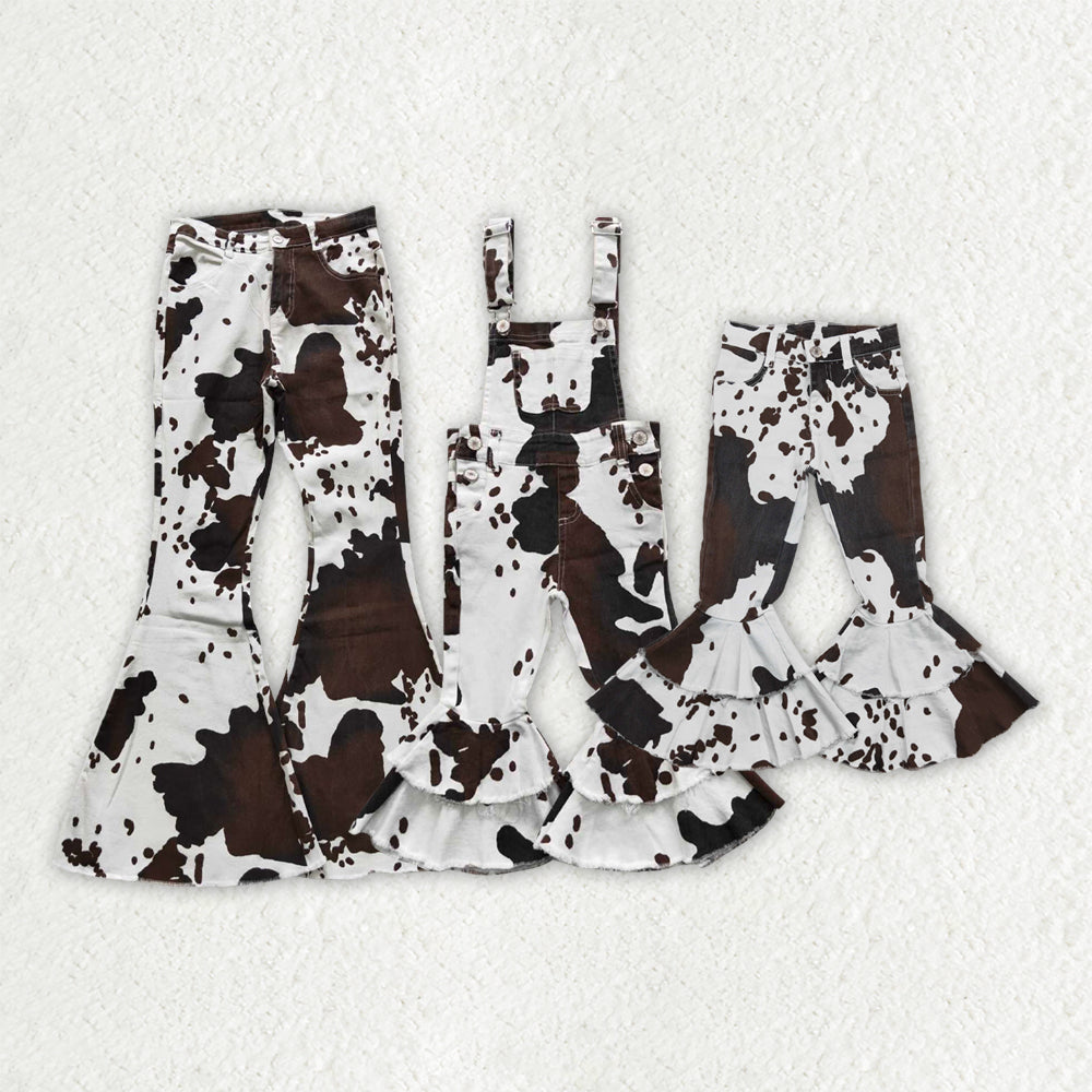 Sibling Mommy and Me Adult Baby Girls Western Cow Print Denim Jeans