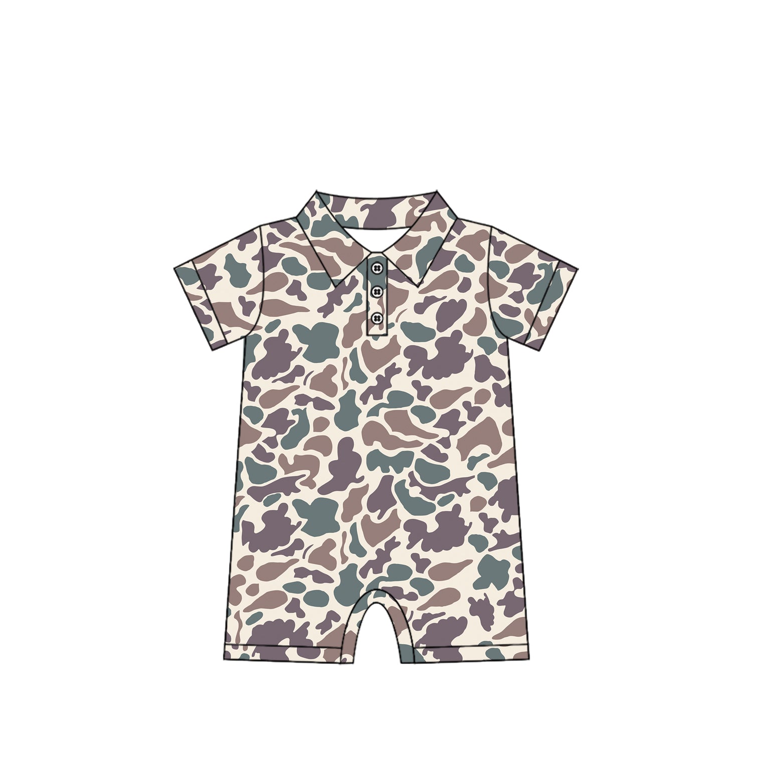 Baby Infant Boys Short Sleeves Lavender Camo Button Rompers Preorder