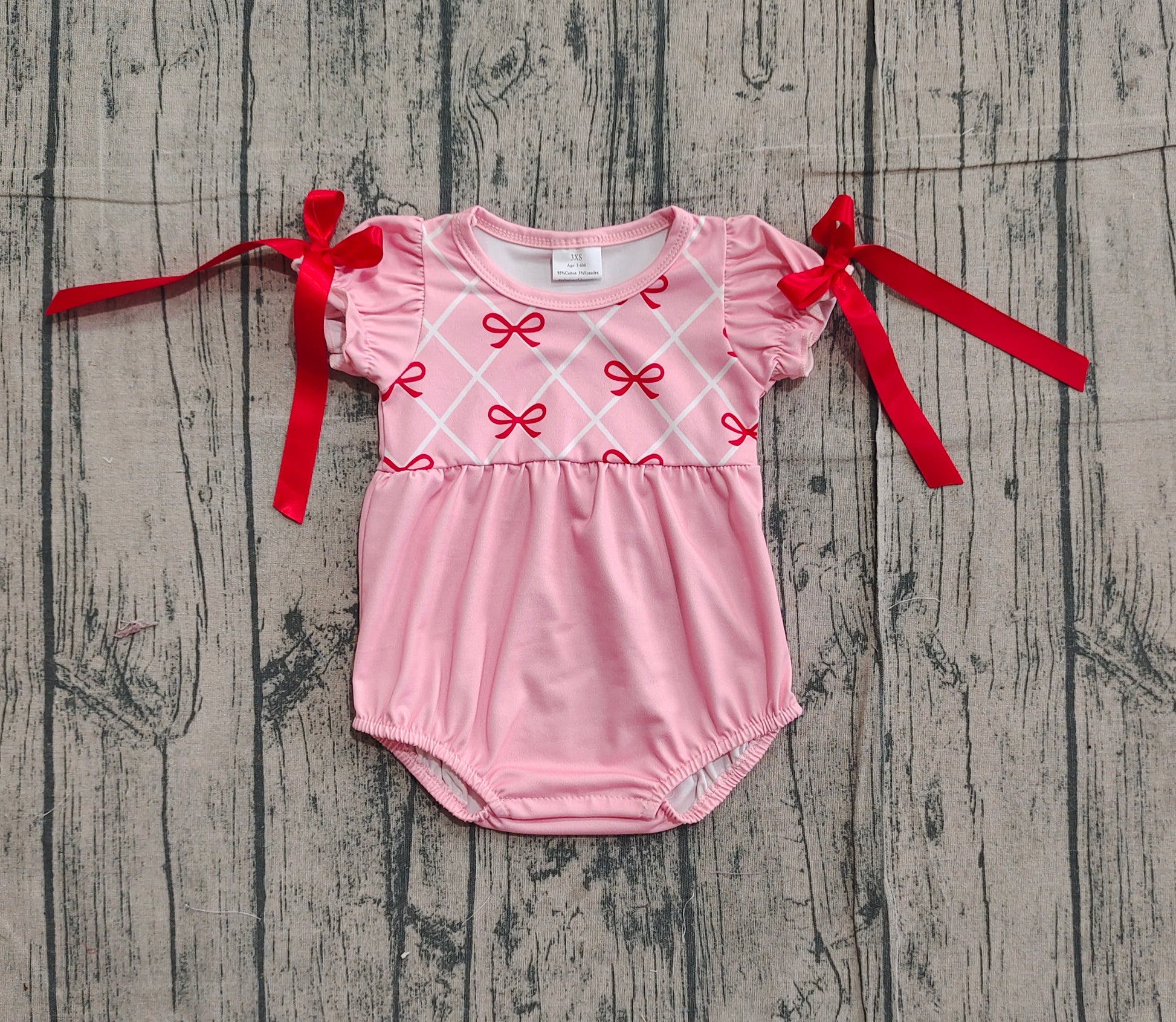 Baby Girls Bows Checked Bows Sleeve Valentine Ruffle Rompers Preorder