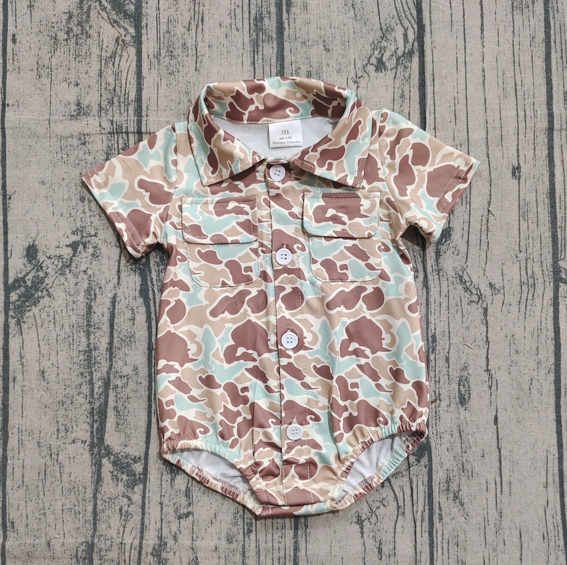 Baby Boys Southern Khaki Camo Button Pockets Rompers Preorder