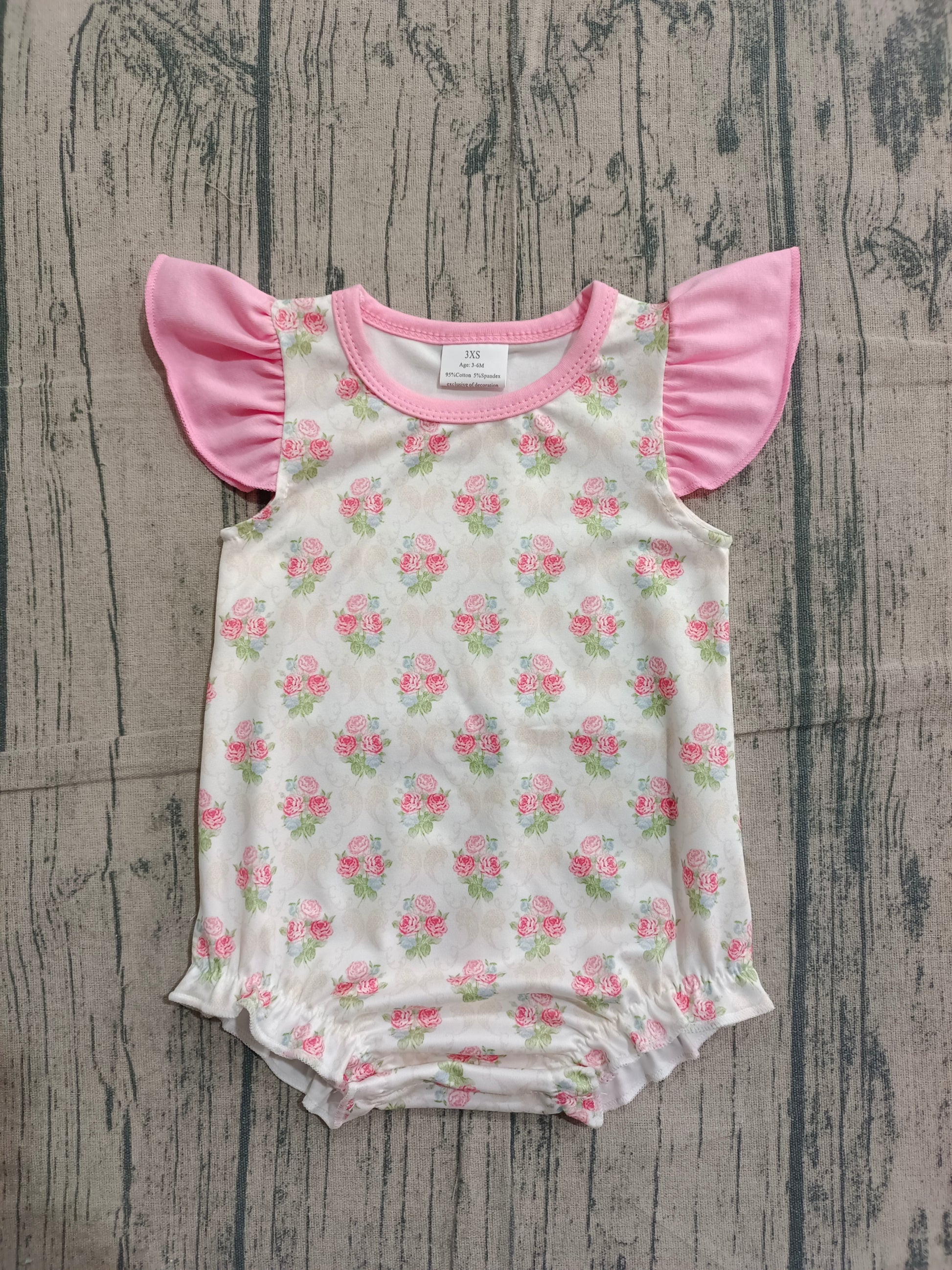 Baby Girls Flutter Sleeve Flowers Checked Ruffle Rompers Preorder