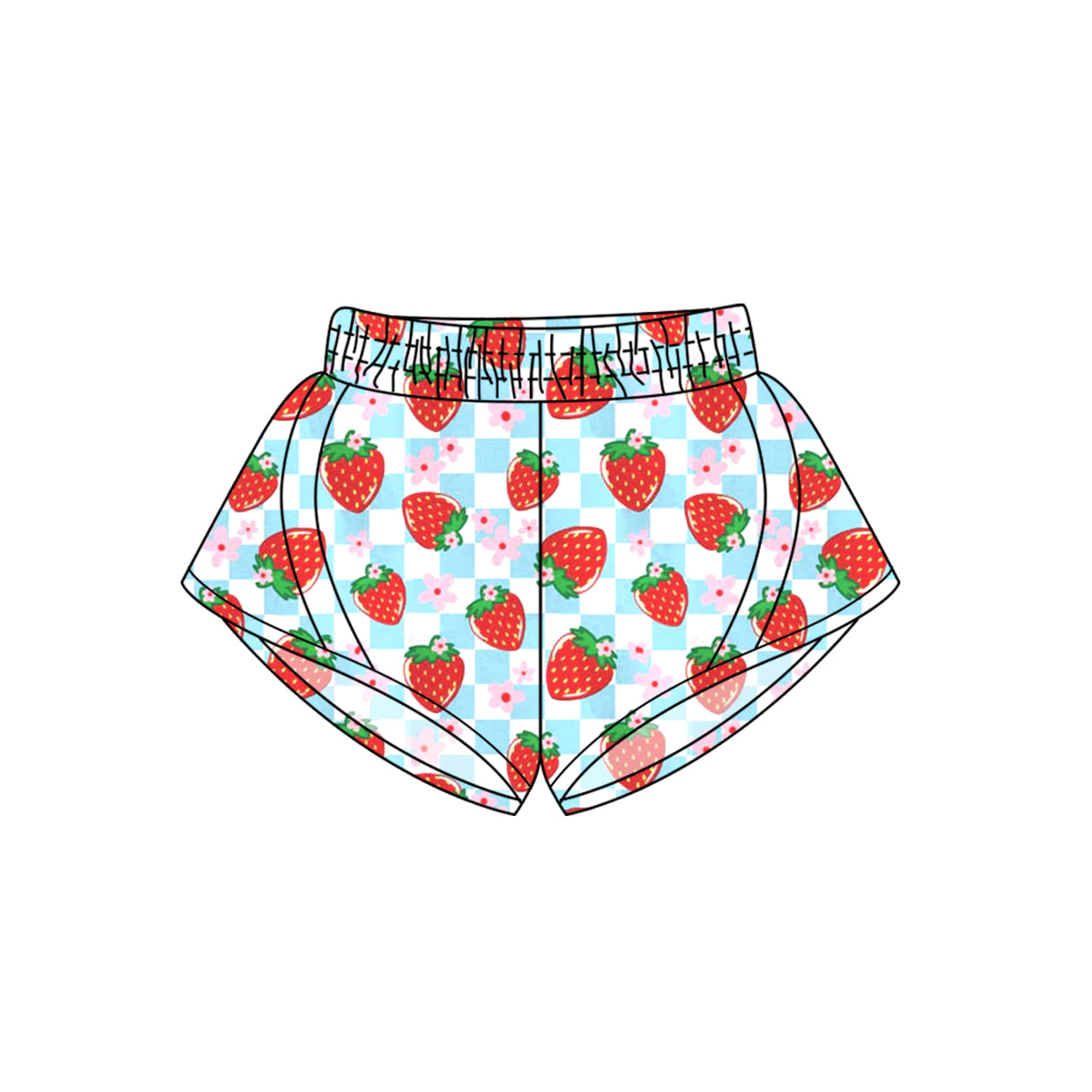 Baby Girls Blue Plaid Strawberry Flowers Yoga Shorts Bottoms Preorder