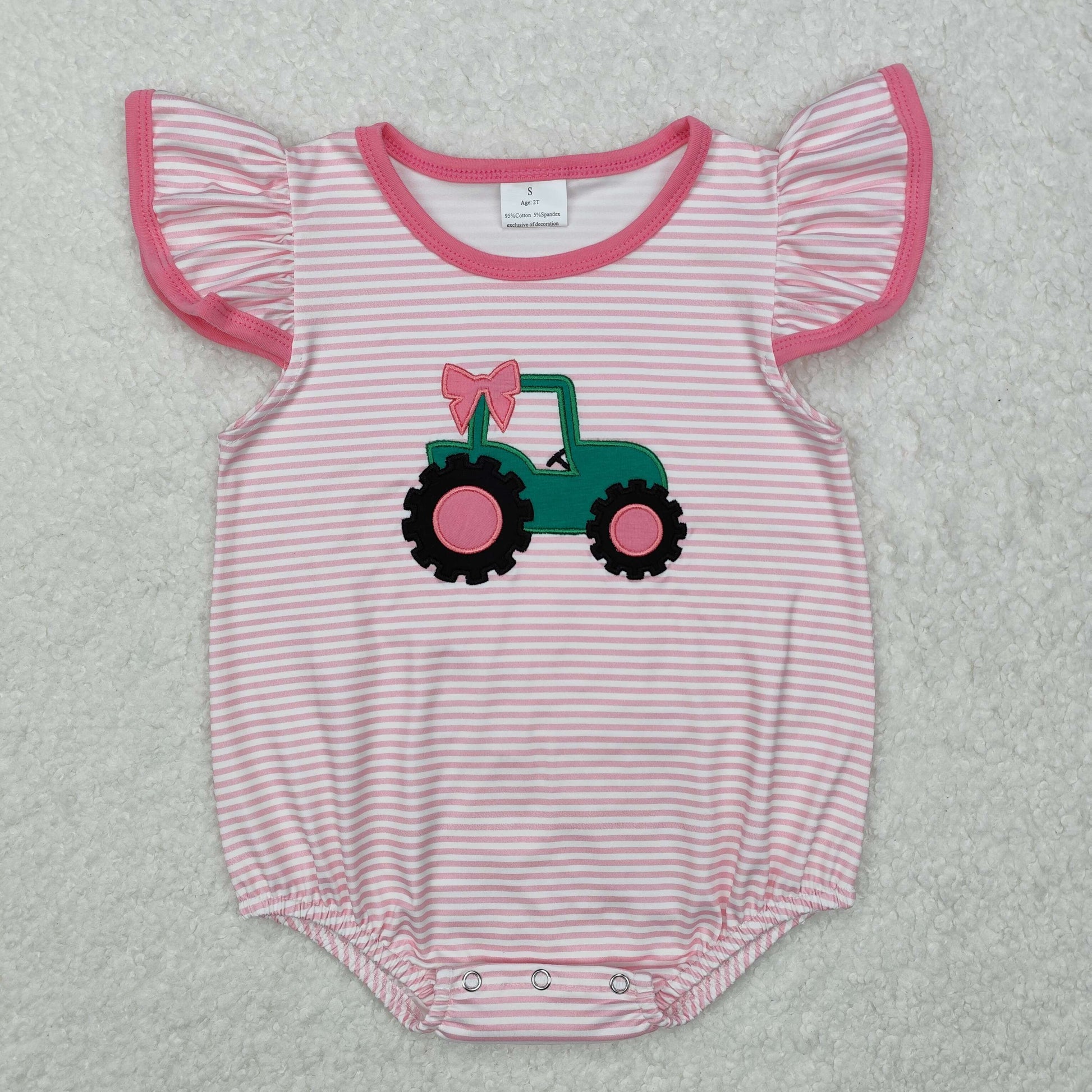 USA Shop Baby Infant Girls Pink Tractor Bow Rompers