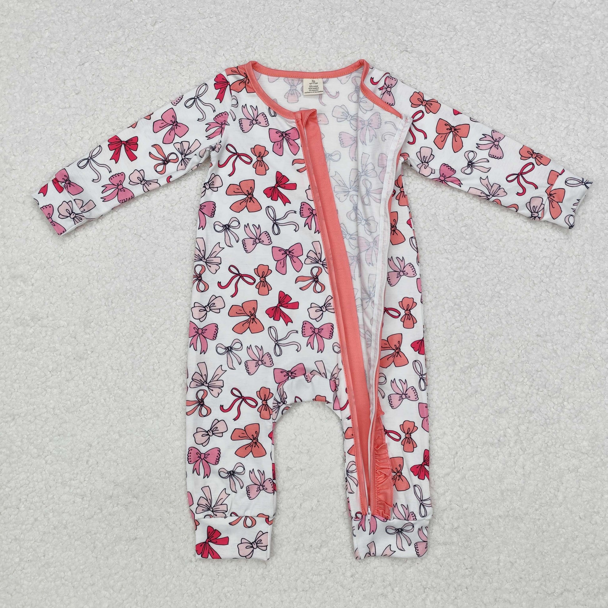 USA Shop Baby Infant Girls Valentines Pink Bows Zip Bamboo Rompers
